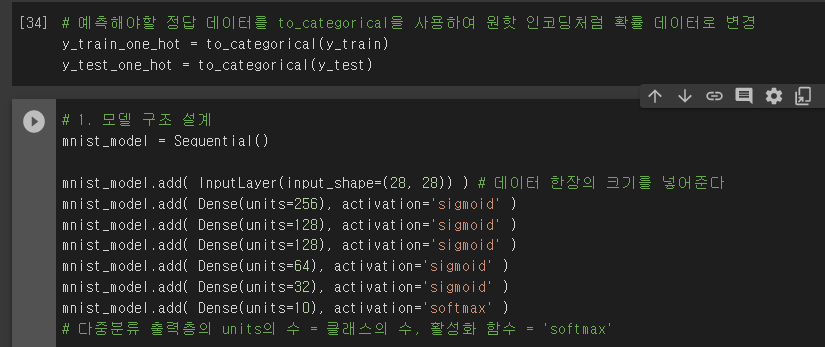 - 맨 마지막 (출력층) 뉴런 개수 : 클래스 개수