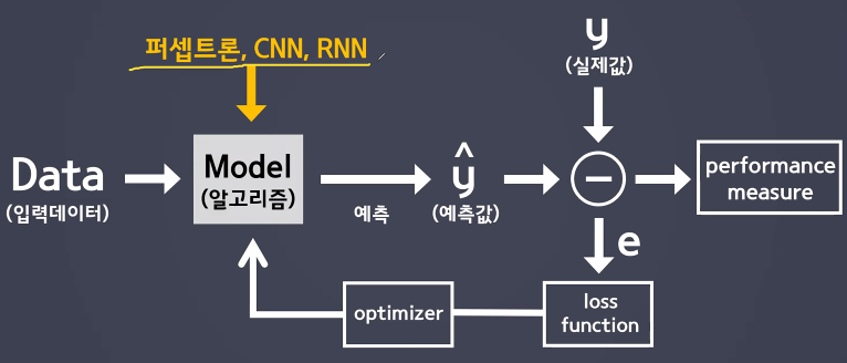 - 가중치(weight)와 편향(bias)의 값을 학습하기 위한 알고리즘