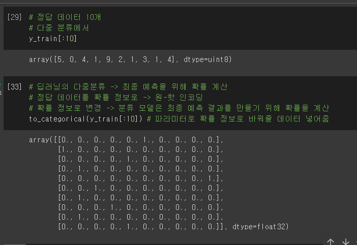 - 확률정보로 학습시키기 위해서 원핫인코딩으로 만든다